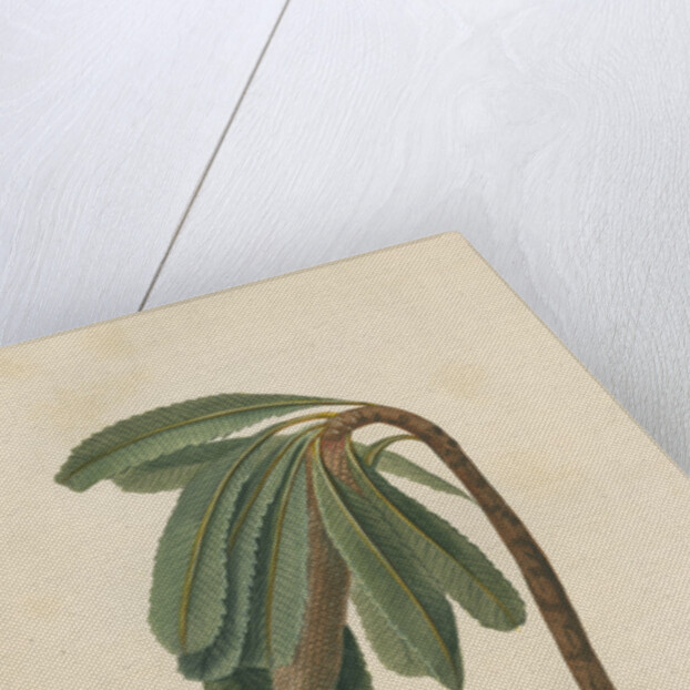 Botanical study of Banksia serrata, a shrub native to Australia and first collected by Sir Joseph Banks. Plate 18 from Journal of a voyage to New South Wales...by John White (J.Debrett, London, 1790). The accompanying text states that: 'The finest new genus hitherto found in New Holland has been destined by Linnaeus, with great propriety, to transmit to posterity the name of Sir Joseph Banks, who first discovered it in his celebrated voyage round the world.' The plate is inscribed: 'F P Nodder delin. The Banksia Serrata in Bud. London Publish'd as the Act directs Dec: 29, 1789, by I.Debrett.'