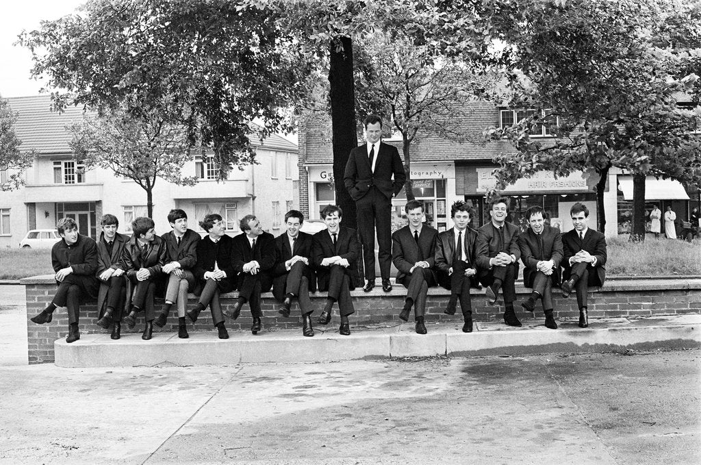 Pop stars from Liverpool, Feature, Manager Brian Epstein, pictured with some of the groups he manages. These include, The Beatles, Gerry & The Pacemakers, Billy J Kramer & The Dakotas, Tuesday 18th June 1963. John Lennon, Paul McCartney, Ringo Starr and George Harrison, Gerry and the Pacemakers, Gerry Marsden, Freddie Marsden, Les Chadwick and Les McGuire, Brian Epstein and Billy J Kramer and the Dokotas Robin McDonald, Mike Maxfield, Billy J Kramer, Ray Jones and Tony Mansfield