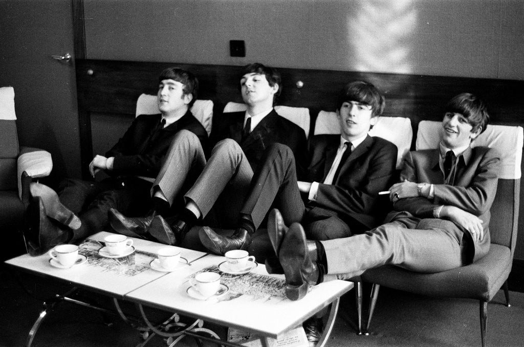 The Beatles at The Prince of Wales Theatre in London, take a break during rehearsals for the next days The Royal Variety Command Performance. November 1963.