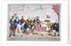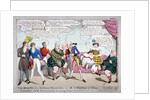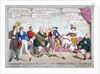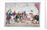 'The Benefits of a Northern Excursion, or R-l pastime at home (ie) fiddling and dancing!', c1822. King George IV in Highland dress dancing on one toe; he is attended by Viscount Sidmouth; Lady Conyngham is sitting on a sofa behind; Lord Conyngham, wearing antlers, is walking away on the left; Sir William Curtis is prancing on the right.
