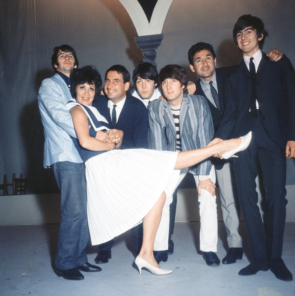 The Beatles pop group with Mike and Bernie Winters and Chita Rivera during rehearsals for the Blackpool Night Out show. 19th July 1964.