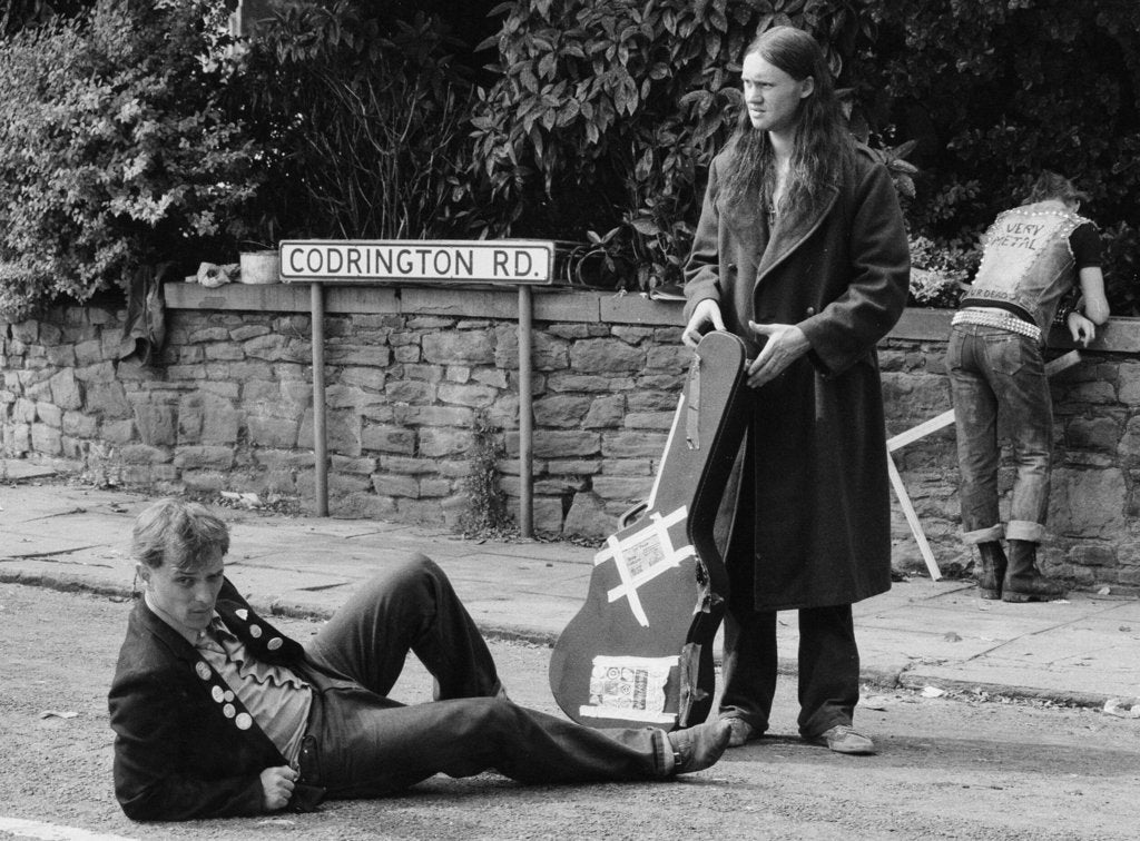 The cast of the Young Ones seen here filming on location at Codrington Road, Bristol.Left to Right Rik Mayall as Rick Nigel Planer as Neil and Adrian Edmondson as Vyvyan 8th April 1982