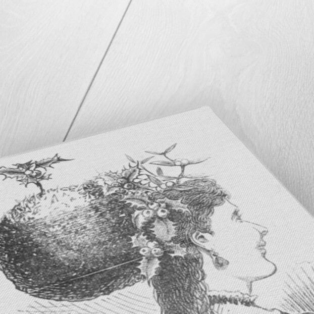 'The Christmas Chignon', 1867. In a Yuletide cartoon, a lady's chignon is made up of a Christmas pudding, complete with sprig of holly. As part of its regular digs at women's fashions, Punch frequently poked fun at the new fashion of chignons. From Punch, or the London Charivari, December 28, 1867.