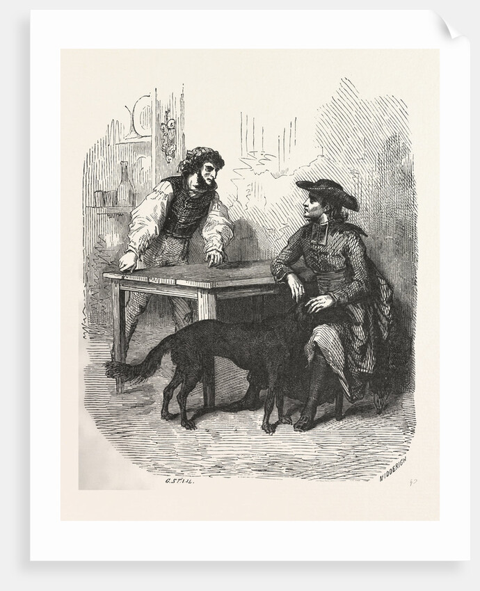 The Count of Monte Christo Alexandre Dumas, 1844, Historical Novel, Adventure Fiction, Romance Novel, Fiction, 19th Century, Priest, Man, Dog, Table, Interior