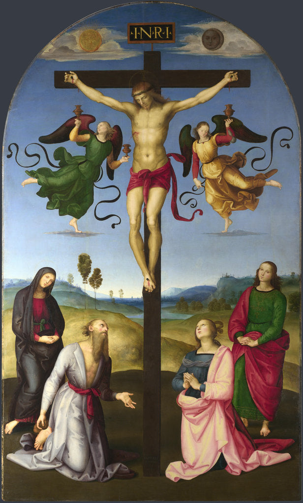 The Crucified Christ with the Virgin Mary, Saints and Angels (The Mond Crucifixion), 1502-1503. Found in the collection of the National Gallery, London.