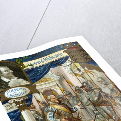The Death of Wallenstein by Friedrich Schiller (1759-1809), (c1900). Act 3, Scene 15: Wallenstein says he knows Mercy well. From a series of Famous Tragedies. French advertisement for Liebig's extract of meat.