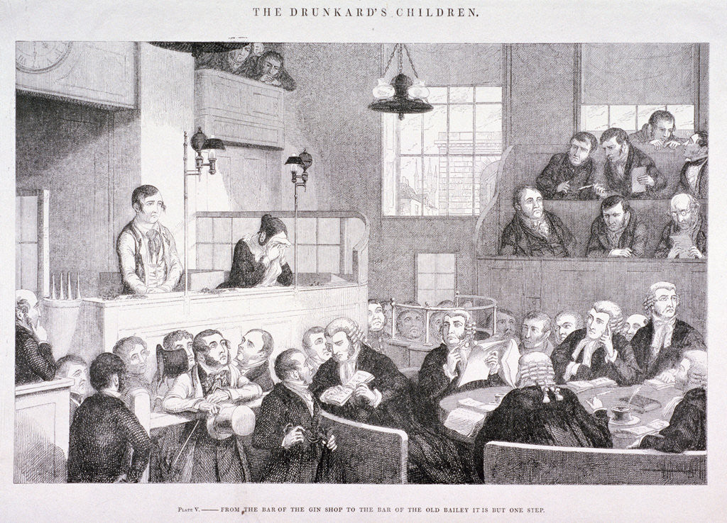 'The Drunkard's Children', c1847; showing the interior of the Old Bailey with the drunkard's children in the dock for robbery under the influence of alcohol.