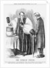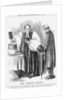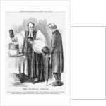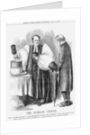 'The Durham Cheese', 1861. The Bishop of Durham, finely clad with the most enormous sleeves, pours the last of the bottle into the cheese, leaving nothing for the shabby clergyman standing before him. This relates to the Rev Edward Cheese, the new incumbent of Haughton le Skerne. The Rev Cheese just happened to be the son-in-law of the Bishop of Durham. From Punch, or the London Charivari, March 9, 1861.