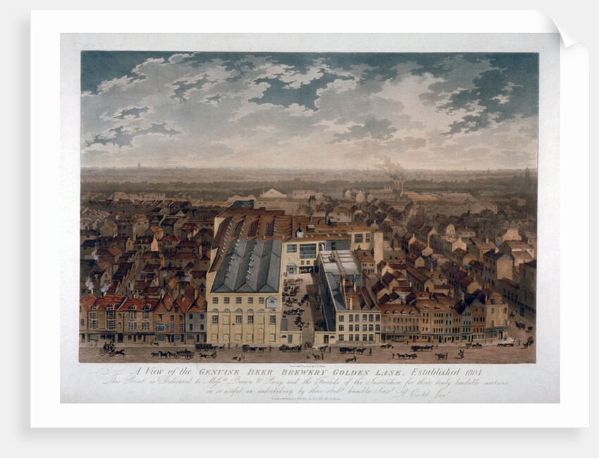 The Genuine Beer Brewery, Golden Lane, London, 1807. Bird's-eye view of the brewery, established in 1804.