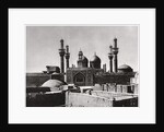 The golden domes and minarets of the al-Kadhimiya Mosque, Baghdad, Iraq, 1925. Two of the Shia Imams are buried within the mosque, which was built in the 16th century. A print from Baghdad, Camera Studio Iraq, published by Hasso Bros, Rotophot AG, Berlin, 1925.