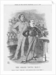 'The Grand Young Man!!', 1886. Lord Randolph Churchill strikes a pose which mirrors the one of Benjamin Disraeli, Lord Beaconsfield, who appears in ghostly form in this cartoon. Since the recent Conservative victory in the General Election, Churchill - rather to the surprise of many - had been given the post of Chancellor of the Exchequer in Lord Salisbury's administration. This, of course, is the post held by Disraeli a number of times prior to becoming Prime Minister. From Punch, or the London Charivari, August 7, 1886.
