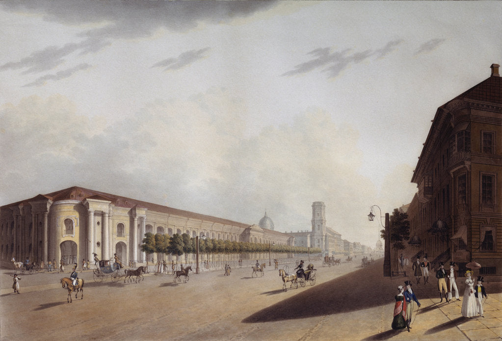 The Great Gostiny Dvor (Merchant Yard) in St Petersburg, 1820s. Found in the collection of the A. Pushkin Memorial Museum, St. Petersburg.