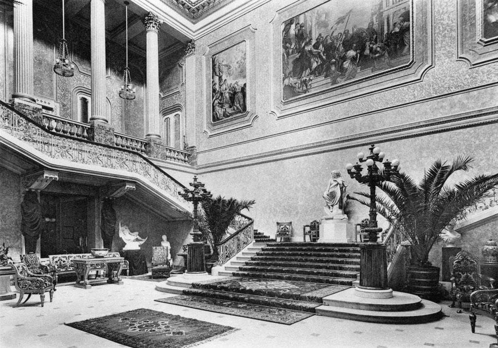 The great hall, Stafford House, 1908. Charles Dickens mentions the private collection of paintings at Stafford House, near St James?s Palace. A photograph from The Private Palaces of London by E Beresford Chancellor, (Kegan Paul, Trench, Trubner and Co, London, 1908).