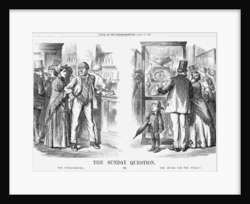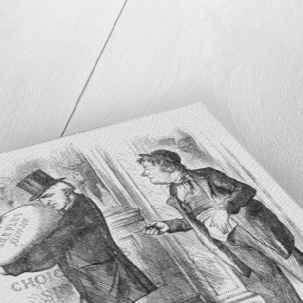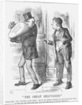 The Great Self-Taxed, 1873. The Liberal Chancellor of the Exchequer, Robert Lowe, makes off with a sack labelled Surplus £5,000,000. He is being heckled by a drunken representative of the working class. This cartoon refers to Mr Lowe's 1873 Budget. He started with a surplus that allowed him to cut 1d of Income Tax, reducing it to 3d in the pound. The labourer is drunk because Mr Lowe had exempted from taxation all hotel servants and all those who dealt in intoxicating liquors. As Punch pointed out, the latter had made generous contributions to the Exchequer and were deserving recipients of such a reward. From Punch, or the London Charivari, April 12, 1873.