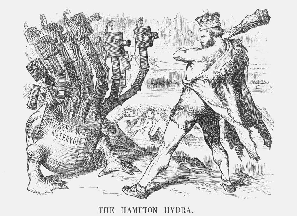 'The Hampton Hydra', 1873. Lord Salisbury faces up to the Hampton Hydra. From Punch, or the London Charivari, March 8, 1873.