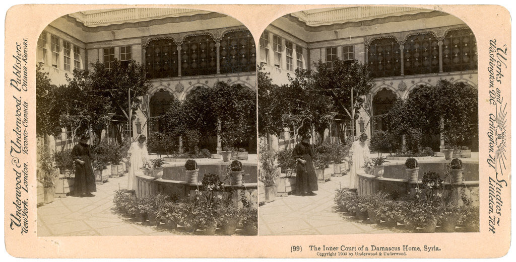 The inner court of a Damascus home, Syria, 1900. Stereoscopic slide.