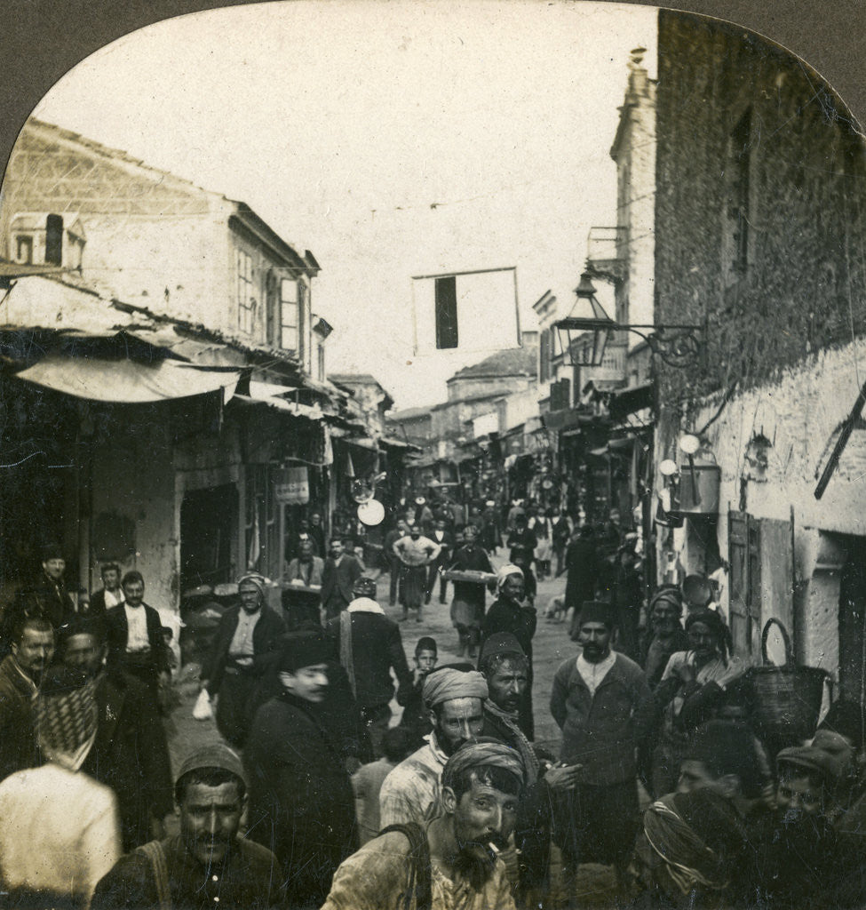 The Jewish quarter, Smyrna, Greece, 1900s. Stereoscopic slide (detail).