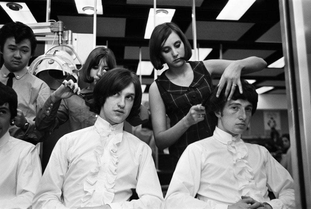 Members of the British pop group The Kinks having their hair styled at a salon. 12th June 1964.