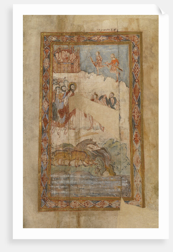 The Miracle of the Gadarene Swine; Unknown; Canterbury (?), England, Europe; about 1000; Tempera colors, gold leaf, and ink on parchment; Leaf [irregularly cut]