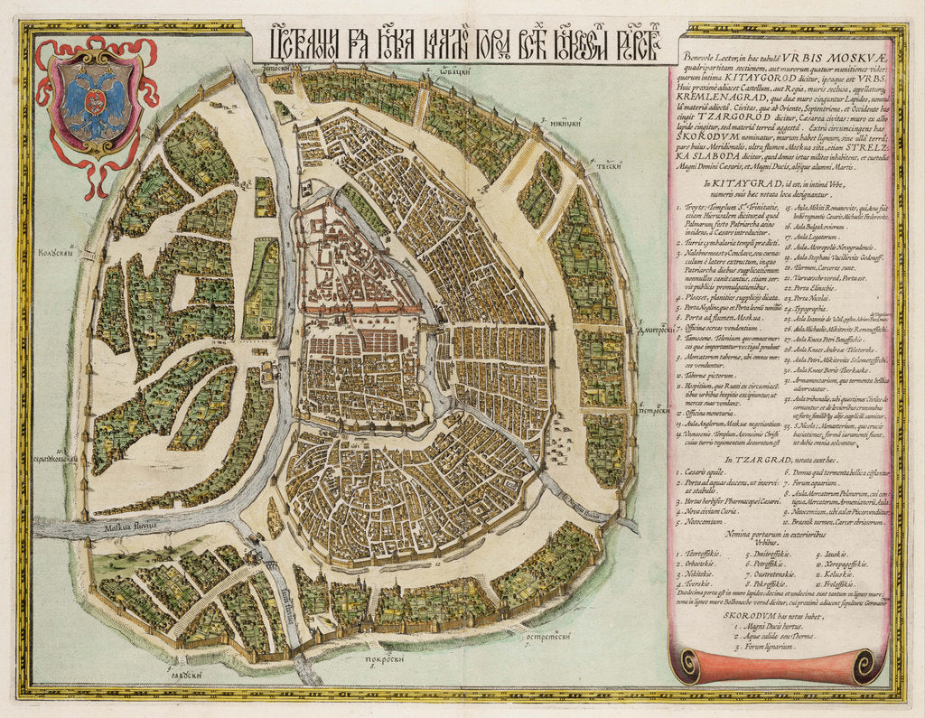 The Moscow Kremlin Map of the 16th century (Castellum Urbis Moskvae), 1662. From a private collection.