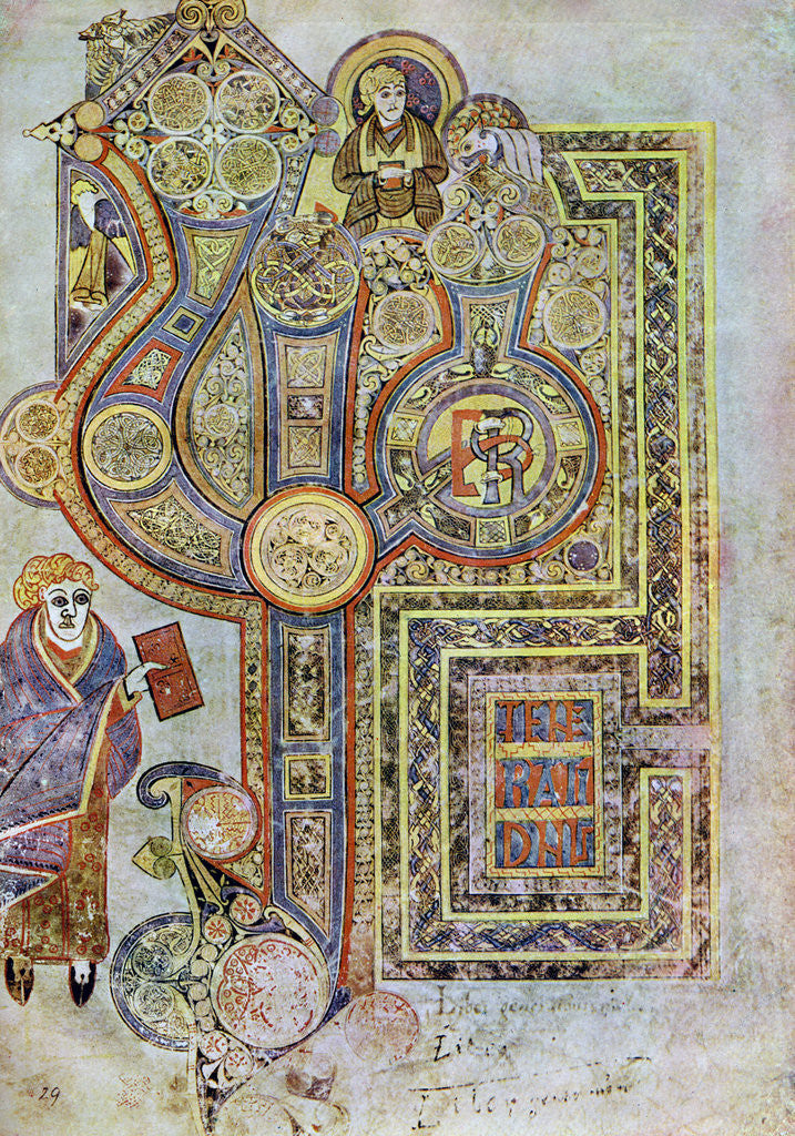 The Opening Words of St Matthew's Gospel, 800 AD, (20th century). A 20th-century copy of the illustrated manuscript, produced by Celtic monks around AD 800. Illustration from The Book of Kells, described by Sir Edward Sullivan, Bart, 4th edition, published in London in about 1920.