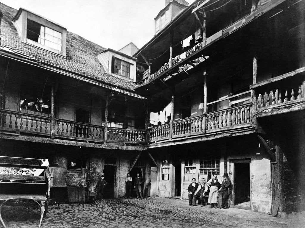 The Oxford Arms, Warwick Lane. Black and white photography. London, England, c.1875.