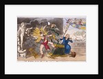 'The Pall Mall Apollo or R-ty in a blaze', 1816. The Prince Regent is dressed as Apollo, McMahon as Mercury pours a chamber pot over his flaming head. On the left are two statues. Lady Hertford (the Regent's mistress) inspects the Venus de Medici. On the extreme right is Brougham as Hercules.