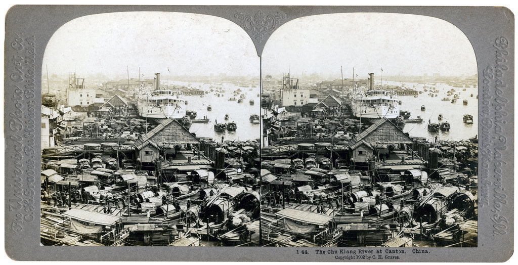 The Pearl River (Zhu Jiang) at Canton (Guangzhou), China, 1902. Stereoscopic slide.