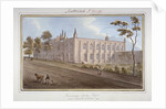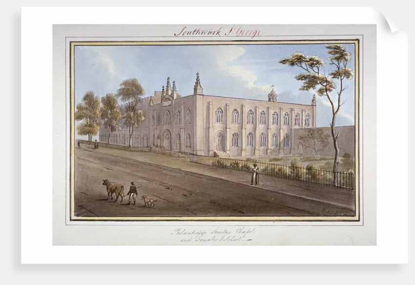 The Philanthropic Society Institution, Southwark, London, 1825. View showing the chapel and female school on London Road. A figure can be seen in the foreground driving a cow.