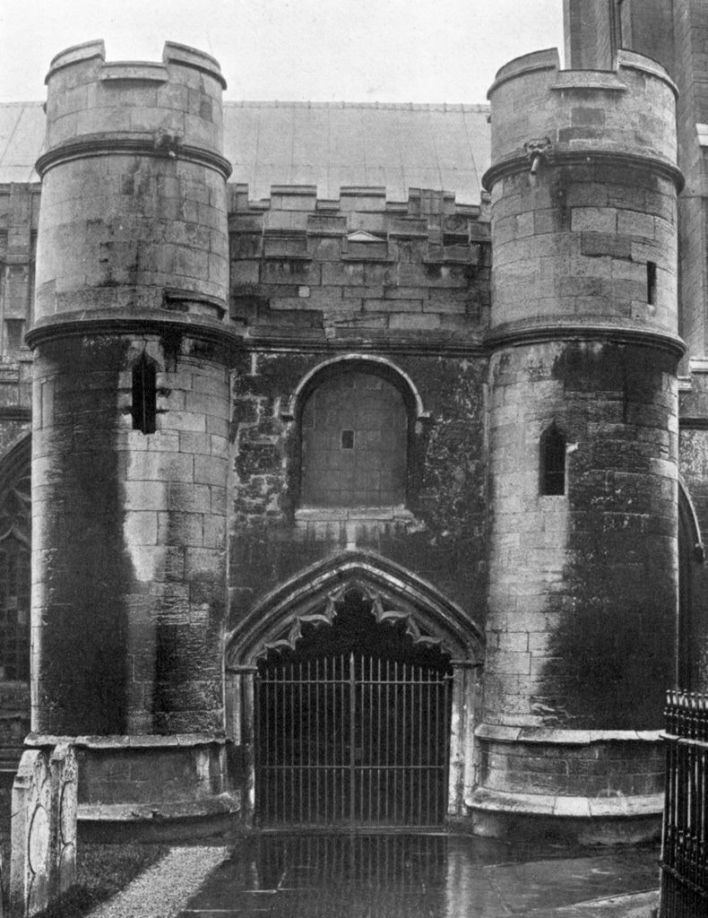 The porch, Holbeach Church, Lincolnshire, 1924-1926. All Saints Church was built in the 14th century. The building incorporated parts of a ruined castle built by Thomas de Moulton, a local baron. A print from Hutchinson's Britain Beautiful, edited by Walter Hutchinson, volume III, 1924-1926.
