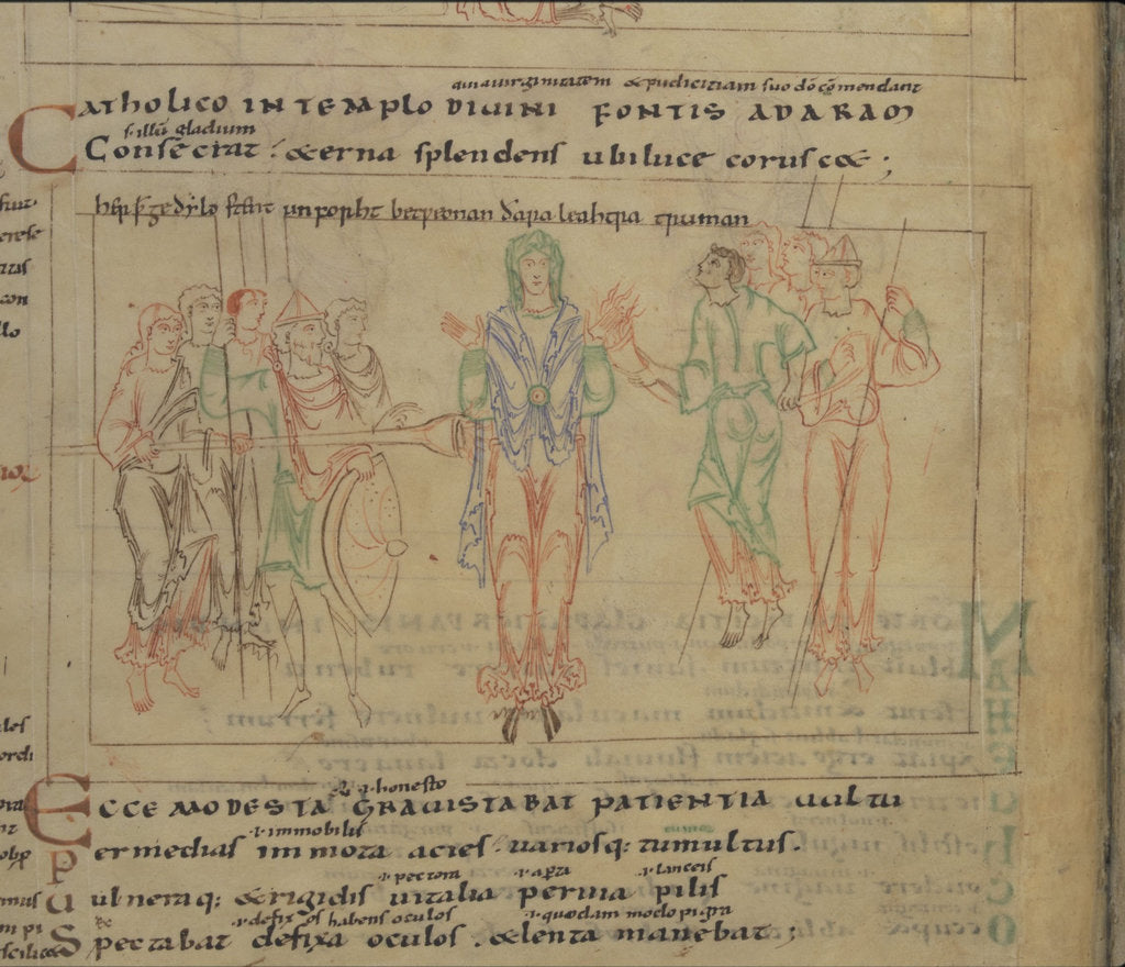 The Psychomachia by Prudentius, 11th century. Found in the collection of the Parker Library, Corpus Christi College.