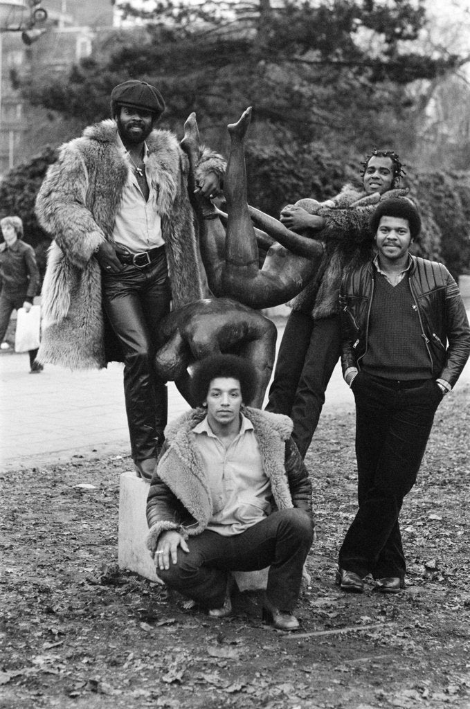 The Real Thing, British soul group from Liverpool, England, pictured in Amsterdam, Holland, 9th March 1979. Chris Amoo, Dave Smith, Kenny Davis and Ray Lake.