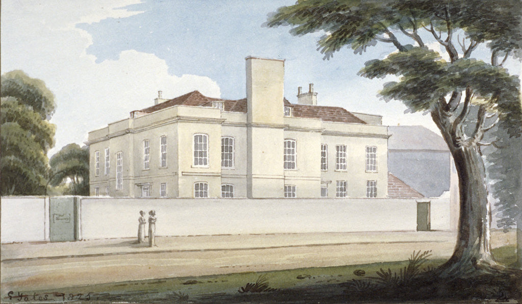The 'Recovery', a house for the mentally ill in Mitcham Green, Mitcham, Surrey, 1825. Mitcham is now in the London borough of Merton.
