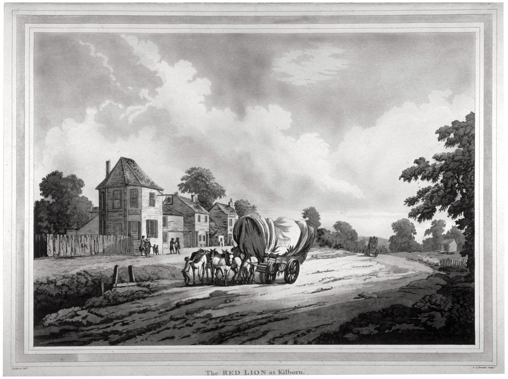 The Red Lion Tavern on the Edgware Road, London, c1788. View with a cart and horses in the foreground.