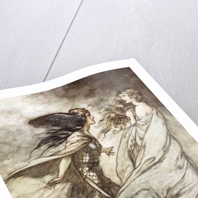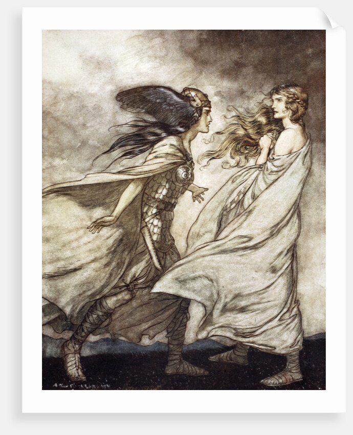 'The ring upon thy hand - ..ah be implored! For Wotan fling it away!', 1924. Illustration from Siegfried and the Twilight of the Gods. Waltraute, Brunnhilde's sister, arrives to warn her of the cursed ring and begs her to throw it away. From Gotterdammerung (Twilight of the Gods). From a private collection.