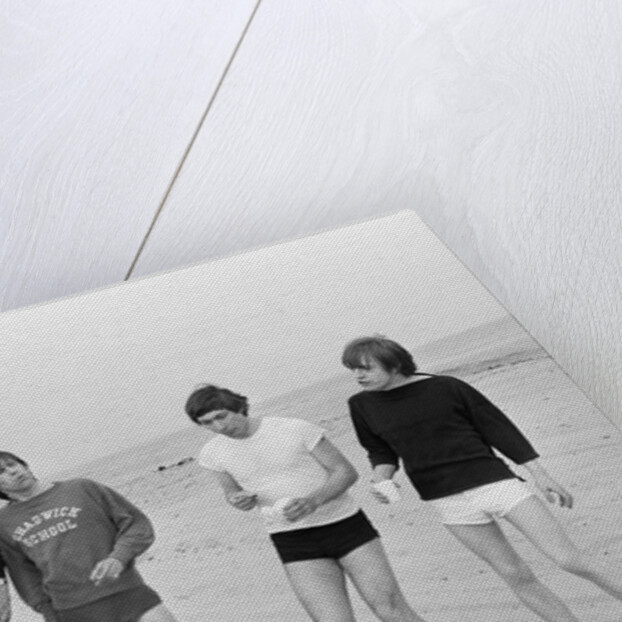 The Rolling Stones. Bill Wyman, Mick Jagger, Keith Richards, Charlie Watts and Brian Jones seen here posing on Malibu beach. According to the photographers ' The boys had some hamburgers and played football and were happy to be beside the sea' However it was too cold to go swimming. During the band's first US tour, 4th June 1964