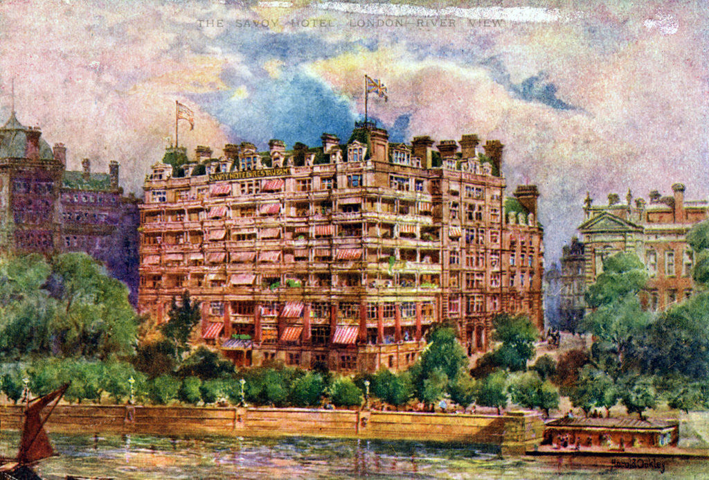 Product details The Savoy Hotel as seen from the River Thames, London