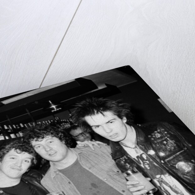 The Sex Pistols in Eindhoven, Holland. Steve Jones and Sid Vicious with a local. 11th September 1977.