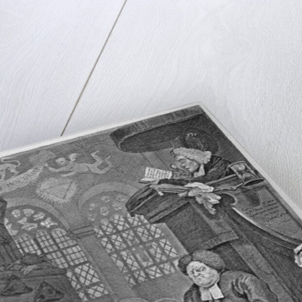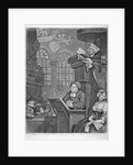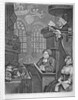 'The sleeping congregation', 1736. The scene is a country church, the only member of the congregation awake (besides the speaker) is the clerk who observes the charms of a young girl. The preacher is John Theophilus Desaguiliers.