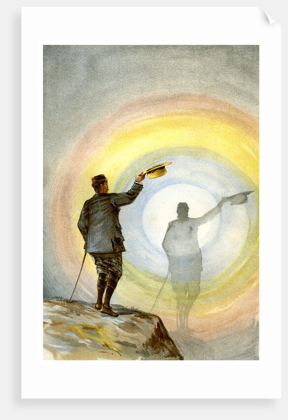 'The spectre and circular rainbow', 1898. Plate taken from In The Forbidden Land (an account of a journey in Tibet, capture by the Tibetan authorities, imprisonment, torture, and ultimate release), volume I, by Arnold Henry Savage Landor, published by William Heinemann (London, 1898).