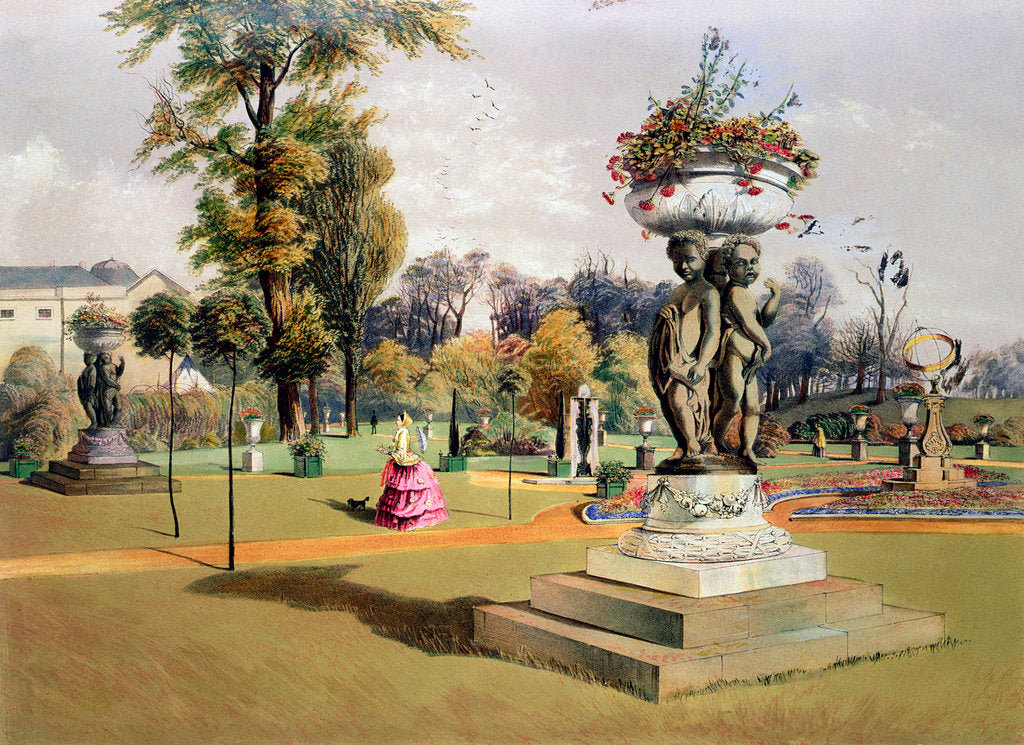 The Terrace Garden, Woburn Abbey, Bedfordshire, mid 19th century. Woburn Abbey has been the seat of the Dukes of Bedford since it was given to John Russell, 1st Earl of Bedford, by Henry VIII.