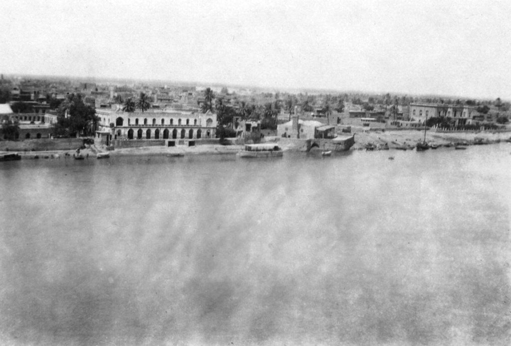 Right bank of the Tigris River, from the 31st British general hospital, Baghdad, Mesopotamia, WWI, 1918. Mesopotamia, formerly part of the Turkish Ottoman empire, was under British military control from October 1918. The new nation of Iraq came into being in 1921.