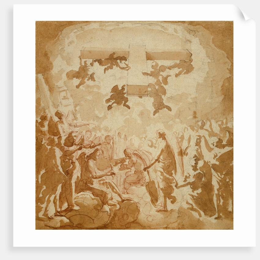 The Triumph of the Cross; Eugenio Cajés (Caxés), Spanish, 1574 - 1634; about 1613 - 1634; Brush drawing in brown wash over red and black chalk