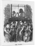 'The Waits', 1885. The shadowy figures drinking a toast are Lord Salisbury (right) and Lord Randolph Churchill. Outside are the Liberal's Joseph Chamberlain, William Forster, Sir William Harcourt and their leader, William Gladstone. The recent General Election had left the Conservatives with a minority government but they had decided to retain office. However, the Liberals are waiting. From Punch, or the London Charivari, December 26, 1885.