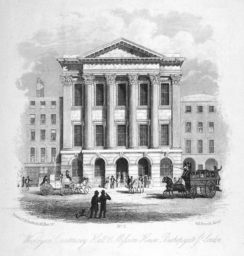 The Wesleyan Centenary Hall and Mission House, Bishopsgate, City of London, 1840.