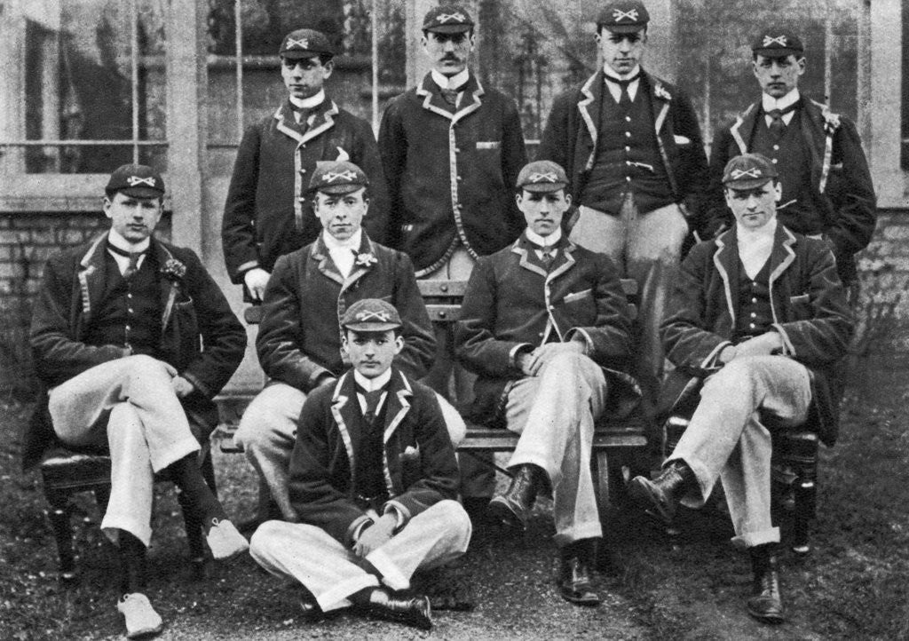 The winning Oxford boat race crew, 1896 (1937). A print from The Story of Seventy Momentous Years, the Life and Times of King George V, 1865-1936, editor Harold Wheeler, Odhams Press Ltd, London, 1937.