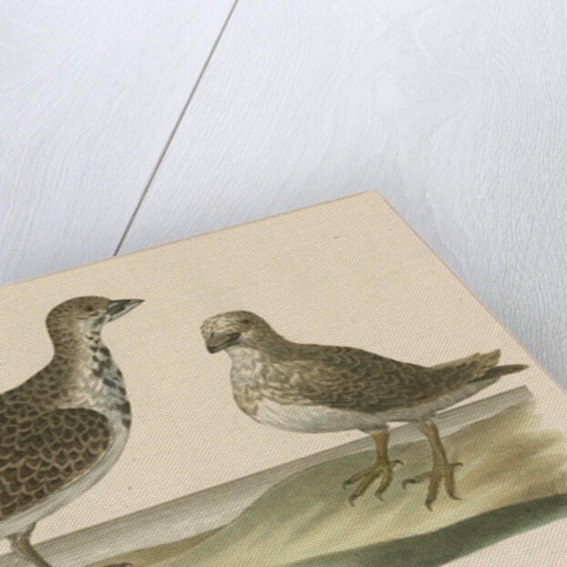 Ornithological study of the Least seedsnipe (Thinocorus rumivorus) a grassland bird of South America. A pair of birds is shown, male and female. Plate 2 from the book Zoologischer Atlas, enthaltend Abbildungen und Beschreibungen neuer Thierarten wahrend des Flottcapitains von Kotzebue zweiter Reise um die Welt..., by Friedrich Eschscholtz (Berlin, 1829). Inscribed 'E. Bomer del. J.Gumpel jun. Sc. Thinocorus rumicivorus.' Johann Friedrich Eschscholtz (1793-1831) Livonian physician, botanist and zoologist, was naturalist aboard two expeditions led by Otto von Kotzebue (1787-1846). The Rurik expedition 1815-1818 and the Predpriaetie 1823-1826 both circumnavigated the world and collected scientific specimens. These are from the second expedition.