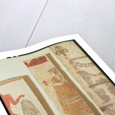 Three wall painting fragments: the 'Fisherman', the 'Priestess' and an 'Ikrion'