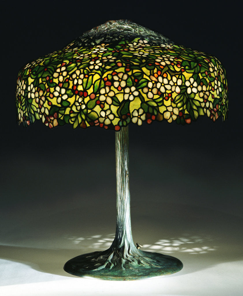 Product details Tiffany Studios 'Apple Blossom' leaded glass and bronze table lamp