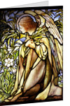 Product images of Tiffany Studios stained glass window of a kneeling angel